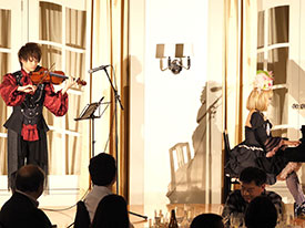 今年はゴシック・ロリータ・ユニットであるDie Milch(ディ・ミルヒ)のCocoさんとWillさんによる特別演奏がありました。Cocoさんの繊細なピアノと、Willさんの奏でるバイオリンの音色が重なり合い、会場全体が瞬時にその独自の世界観に包み込まれました。洗練されたテクニックと、心に深く突き刺さるような情感豊かな旋律に、社員一同が息を呑んで聴き入りました。